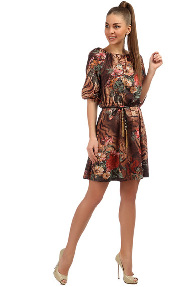 Повседневное платье из микрофибры коричневой расцветки. Модель с рукавами 2/4 и поясом, собранными на резинку. Ремень продается отдельно.