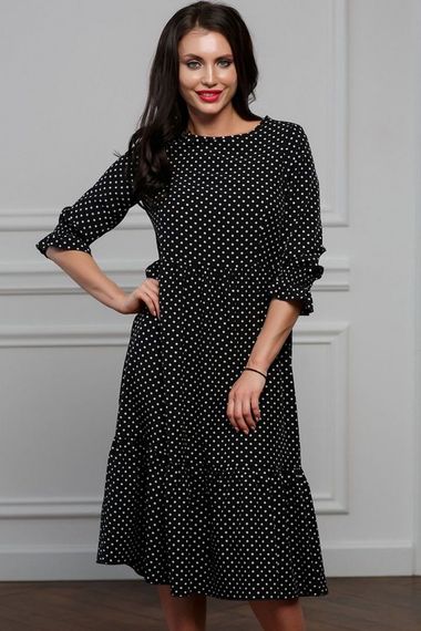 Длинное черное платье в горох Look Russian