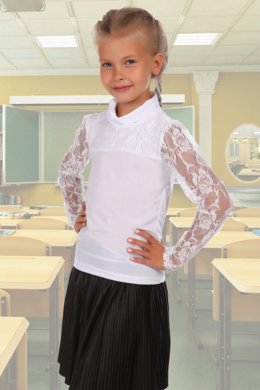 Фото товара 22616, белая водолазка для девочки с кружевными рукавами